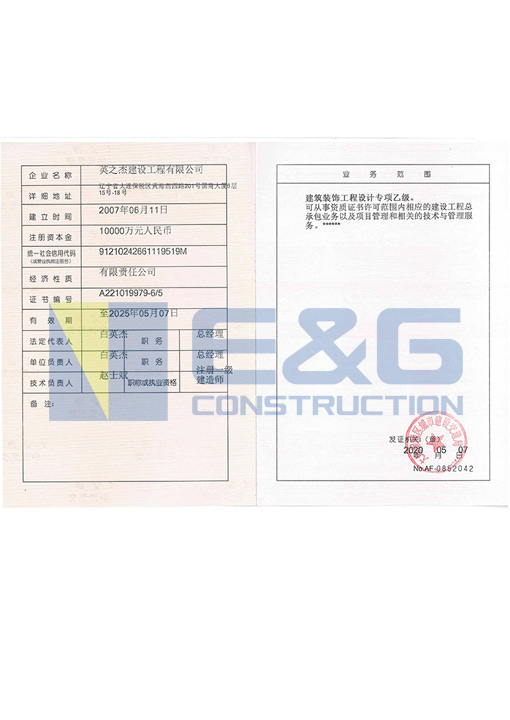 建筑装饰工程设计专项乙级证书